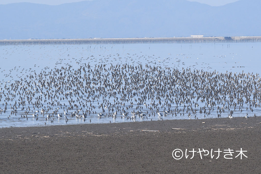 まず、午前10時、大授搦が満潮になる1時間前から観察を開始しました。ここではシギ・チドリ類を中心に種数を稼ぎました。その後、白石町の福富干拓でジロネンを狙い、新拓溜池ではガンカモ類を観察。予定通り午後1時までに観察を終え、次のポイントである長崎県諫早干拓に向かいました。ところが、ここで予想外の事態が発生!祐徳稲荷神社までの道が正月特有の大渋滞に見舞われたのです。結果、諫早干拓に到着したのは午後3時半頃となり、狙いのコチョウゲンボウやマミジロタヒバリを観察できずじまいに終わりました。日没後は、コミミズクやヤマシギ、ゴイサギを観察。さらにトラフズクやアオシギも探しましたが、こちらは見つけられませんでした。そして早朝からは長崎半島の野母崎地区へ移動。ここでも鳥見を続けましたが、爆風が吹き荒れる中での観察となり、鳥の動きは非常に鈍く、コゲラを発見したのは終了10分前のことでした。見つけたときには、普通種であるにもかかわらず大興奮してしまい、脳内麻薬がドバドバ出るほどでした。しかし、この悪天候の影響でアオゲラやエナガといった種は観察できませんでした。